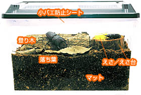 マット  めすをいっしょに飼育する場合、めすはよくマットにもぐるので、マットは深めにセットします。 |