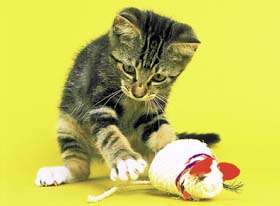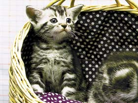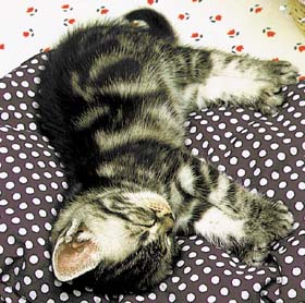 元気な子猫は、よく動き回ることが大切。目がきれいで、人間に寄ってくるような子がよい子猫です。しかし、あまり動かない子でも、「目や顔、お尻がきれい」「お腹がたっぷりと膨らんでいる」「手足に力がある」など、健康であれば、大丈夫です。動いていなくても、眠いから動かないとか、性格がおとなしいという場合もあって、かえってそういうおとなしい子の方が飼いやすいこともあります。長い時間にわたって、観察することが大切です。 |