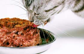 日本では長い間、ネコは人間の御飯にかつお節をのせたネコマンマのような餌しか与えられていませんでした。しかし、人間の与える餌に慣れて雑食性になったイヌと違って、ネコはもともとネズミなどの小動物を食べる完全な肉食動物です。