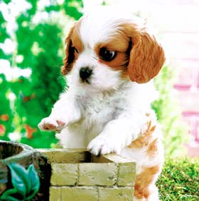 初期段階のトイレトレーニングを行う時期です。しかし、失敗したからといって怒ったり、怒鳴ったりしてはいけません。子犬が恐怖心を持ってしまいます。子犬の動きを観察して、ソワソワしたり、その場でクルクル回転するような動きは、オシッコやウンチをしたがっているときの合図です。最初は、この動きが見られたら、トイレで用を足させます。トイレはあらかじめトイレシートなどを用意しておくといいでしょう。常に清潔にすることが必要ですが、次にトイレをするときのために、子犬自身のにおいがなくなるまでの清掃は、必要ありません。トイレに、においを付けて子犬に覚えさせるのです。 |