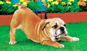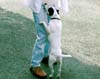 飛びつく 飼い主や家族などに甘えているときによく行います。散歩や食事の催促をしている場合もあります。 |