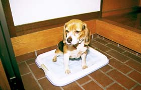 とにかくトイレの枠の中で排泄するのだよ、ということを最初に覚えさせます。トイレの場所がどうしても都合が悪い場所の場合には、トイレをきちんと認識したところで、15センチとか20センチずつ場所を移動していきます。こうして時間をかけて、都合のいい場所までトイレを移動させるのです。