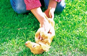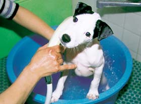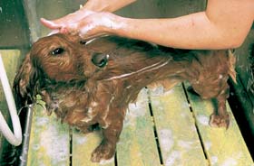 普段から体に自由に触り、それを犬が気にしないように習慣づけることは、手入れ全般に大切です。これは犬との信頼関係ができていれば簡単なことです。自分の生活を乱さず、犬を人間のルールにあわせながら生活するメリハリが大切なのです。 |