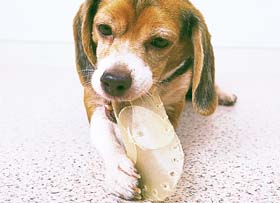 さて、口に入れてみたら大好きなモノだったとなれば、犬の不安は消え、もっとほしいと思うでしょう。これを繰り返し、歯みがきが嫌でない状態にし、次第にガーゼだけで磨けるようにもっていきます。終わったら、褒め、遊んであげてください。