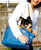 キャリーバッグ 小型犬を入れて運搬するバッグ。特に夏の日差しで熱くなったアスファルトの上を避けて、公園や買い物などに一緒に出かけること。