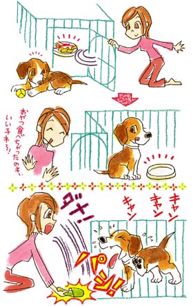 注意:中でキャンキャンと鳴く場合には、いくらキャンキャン鳴くからと、外に出していると、鳴けば出してくれることを覚え、かならず鳴くようになります。状況が許すなら、鳴いてもそのまま放っておきます。