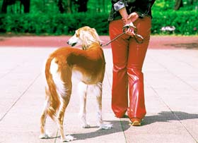 犬と歩くときには、リードを短めにもった上で、たるみのある状態で歩くことが大切です。通り過ぎる犬や人に過度に反応して騒ぐようでは、ひっぱられて飼い主がケガをする場合もあります。散歩のコース、時間などは犬の好き勝手にさせるのではなく、飼い主が決めるようにします。