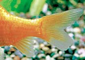 ワキンなどの一般的な金魚の尾びれの形ですが、ワキンはフナ尾よりも少しつまっています。