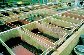 養殖場では、見学できるところもあり、普段あまり見られない金魚に出会えたり、金魚飼育の参考になる面もあります。金魚のふるさとを訪ねてみるのも参考になるかもしれません。 |