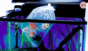 - 最後に、袋の中の金魚を水槽に入れます。この時、金魚だけを水槽の中に入れ、袋の中の水は、水槽の中に入れない方が良いです。
