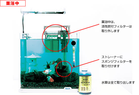 薬を使用するときは必ず説明書を読んで、その指示に従いましょう。また、子供には触れさせないようにしましょう。病気の金魚をすくったアミは煮沸消毒しましょう。