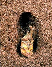 1. さなぎになるために周囲の土をかためて部屋をつくります