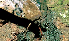 昆虫の仲間は、大きくわけると、肉食と草食にわかれます。肉食と草食といっても、それぞれの昆虫によって、頭からバリバリと食べてしまうものや、体液を吸うものなど、いろいろです。草食でも、実を食べるものや葉を食べるもの、蜜を吸うもの、樹液を吸うものなど、さまざまです。その食べ物によって口の形も変化し、それぞれの食べ物が食べやすい形になっています。どんな昆虫がどんな食べ物を食べて、どんな口の形をしているのか、観察してみるといいでしょう。