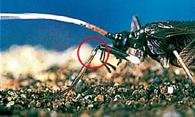 バッタやセミなどの仲間は、おすはめすに求愛するために翅をこすり合わせたり、特別な器官を使って鳴き声を出します。これらの仲間は、この声を聞くために耳をもっています。中でもバッタの仲間は、観察しやすい場所にあります。バッタの中のキリギリスのグループの多くは前あしに。バッタのグループは腹部の両わきにあります。