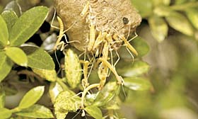 産卵するオオカマキリ