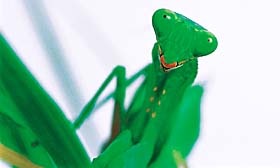 えさをつかまえるオオカマキリ