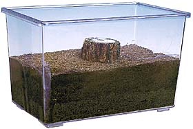 プラスチックケースに、乾いた細かい砂や土を入れて、巣の土台になる木などを入れましょう。逃げないようにふたをします。