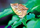 擬態 自分の体を周囲の色に似せて身を守ること。例として樹皮の色そっくりなガや、木の葉に似たコノハチョウなどがあげられる。また、毒をもっている昆虫の色に似せることで擬態を行っているものもいる。