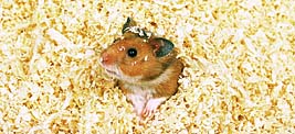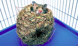 床材には、ウッドチップや牧草が必要です。これらの床材は、ハムスターの保温材になるほか、足元のクッションにもなり、牧草だと食料にもなります。また、ジャンガリアンハムスターなどの小型ハムスターの場合、床材を深めに入れておけば、巣箱がなくても、床材の中にもぐって、トンネルにし、そこを巣にします。