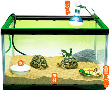 爬虫類の中でも、人気の高いリクガメ類は、大型の水そうで飼うことができますが、種類によっては、大きくなるものがいるので、ペットショップで入手するときには、成長したときに、どのくらいの大きさになるのかを確認してから飼育するようにしましょう。