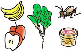 カメは、おもに野菜や果物が主食です。ときどきコオロギやミルワームなども与えましょう。