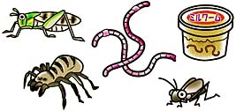生きたエサを与えましょう。コオロギやクモ、ミミズ、バッタ、ミルワームなどを選びましょう。