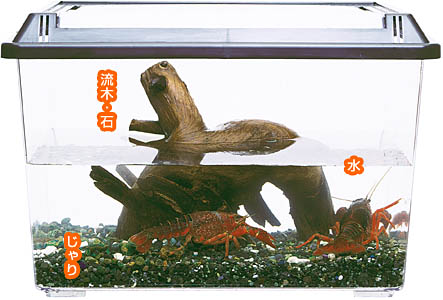 なるべく大きめの水そうやプラケースで飼育します。しっかりとふたのできる容器を選びましょう。