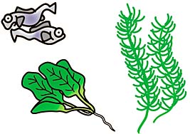 アメリカザリガニはいろいろなものを食べる雑食性です。飼育容器の中に水草を入れておけば、それも食べます。ほかにもにぼしや青菜、ペットショップで売られているザリガニのエサ、生きたメダカなどを与えましょう。