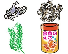 体が小さいので、それぞれのエサは、細かくして与えるようにしましょう。