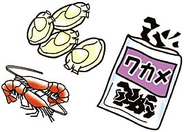 ヤドカリは雑食性なので、いろいろなものを食べます。乾燥エビやアサリのむき身、水でもどすワカメを与えましょう。
