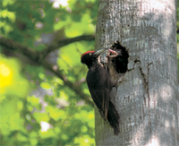 キツツキのなかまは木に穴を開けるときに、1秒間に20回ほど、木をたたいている。特殊な体のつくりによって、頭への衝撃は、首、体へと、分散されるようになっている。