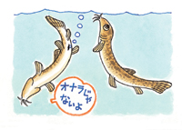 ドジョウは魚でありながら、腸で呼吸する。そのため、ときどき水面まで上がり、口で空気を吸う。そのとき、ガス交換のために、肛門にあたる部分から、おならのように泡が出る。