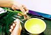 1. お温を入れ、水温を26℃くらいに合わせる。このときお温をガラス面にかけないように注意する。