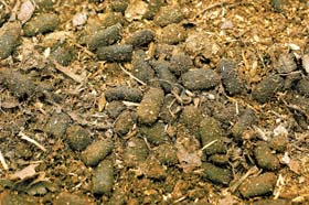 マットに、このようなふんが多くなってきたら、交換しましょう。このとき、マット全部ではなく、半分交換するといいでしょう。 |