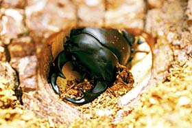 木のうろで休むオオクワガタ。自然界での冬眠は木のうろで行われる