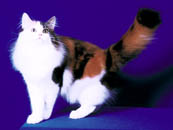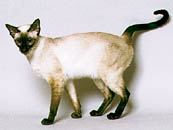 ポイントカラー (ポインテッド) 耳、頭部、四肢、尾に色の濃い部分があり、体の先端にゆくに従ってだんだんと色が濃くなる、シャムの模様です。カラーは色々ありますが、シールポイントなど、独特の色合いがあります。 |