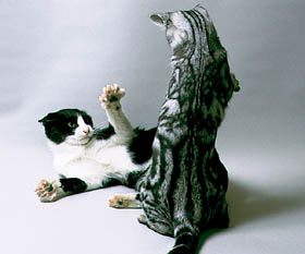 ネコは、他の個体や人間との共同生活や、飼い主に甘えるという、野生では見られない新しい習性を獲得し、神経質で孤独なハンターから愛らしい動物へ生まれ変わったのです。 |