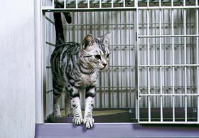 ネコは一日に16時間以上寝るといわれ、それほど始終動き回る動物ではありません。そこで、子どもの頃から慣らせば、ケージで飼うこともできます。しかし、その場合、毎日たっぷり遊んであげて、トリーツやおもちゃを与え、一人でいるときもストレスを感じさせないようにする配慮が必要です。