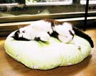 市販の寝床やクッションなど、ネコが安心して居ることのできる寝場所を作ってあげます。毛布やタオル、座ぶとんなど、人間用の物でも代用できますが、ネコ専用にして、取り上げたり、場所を変えたりしないようにしましょう。 |