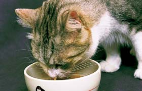 日本では長い間、ネコは人間の御飯にかつお節をのせたネコマンマのような餌しか与えられていませんでした。しかし、人間の与える餌に慣れて雑食性になったイヌと違って、ネコはもともとネズミなどの小動物を食べる完全な肉食動物です。