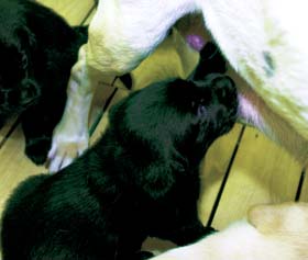 生後まもなくのラブラドール・レトリーバー |