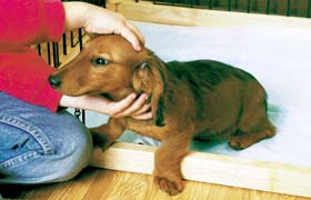 子犬がやって来た日、そっとしておくと言う人もいますが、子犬は不安でたまりません。こんな時だからこそ、抱っこしてあげたり、優しくなでてコミュニケーションをとりましょう。一番不安な眠るときに、一緒にいてあげることで、子犬は飼い主を信頼し、より早く家族にも慣れ親しむはずです。 |