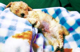 いっしょに寝ることで、子犬も安心します |