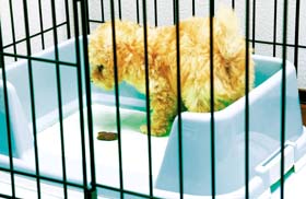 トイレシートを覚えたら、サークルやケージ内にトイレをセットして、トイレでおしっこやウンチをさせましょう。このとき、トイレには、その前にしたおしっこやウンチで、においをつけておくといいでしょう。