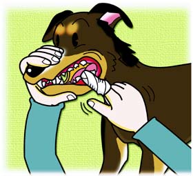 まず、最初はガーゼに大好きなチーズやレバーペーストなどを、僅かでいいので、つけてください。それで歯をみがきます。