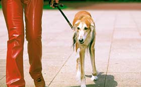 犬と歩くときには、リードを短めにもった上で、たるみのある状態で歩くことが大切です。通り過ぎる犬や人に過度に反応して騒ぐようでは、ひっぱられて飼い主がケガをする場合もあります。散歩のコース、時間などは犬の好き勝手にさせるのではなく、飼い主が決めるようにします。
