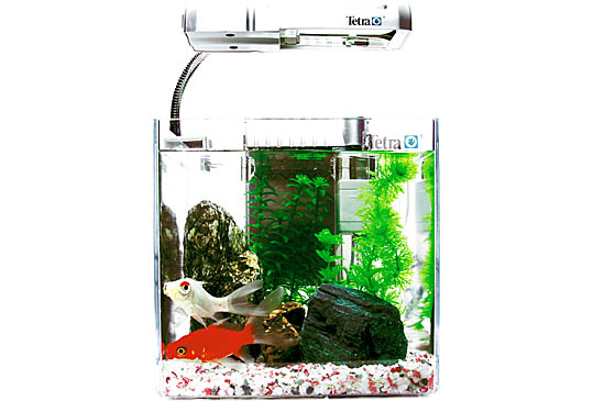 一見、ふつうの水槽レイアウトですが、こだわりは庭園風の置き石です。ふつうなら、石の色や種類を統一するところですが、庭園の雰囲気を出すために、あえて種類や色の違う置き石を使用します。底材は置き石の映える白っぽいものや、写真のような五色玉を使用しましょう。水草は人工水草を使用すると、手入れが楽です。