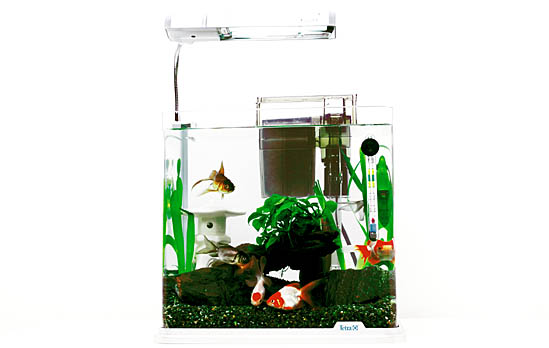 かつては、金魚の飼育といえば、灯籠や太鼓橋、水車が定番でしたが、最近では販売こそされているものの、あまり見かけることの少ないレイアウトになっています。小型水槽では、あまりごてごてと並べることは不可能ですが、金魚らしい風情のあるレイアウトもいいものです。灯籠などの小物は、ペットショップなどでもふつうに入手できます。水草は、ジャイアント・バリスや流木付アヌビアス・ナナなどを使うといいでしょう。