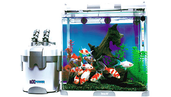 上部フィルターと仕組みは同じですが、密閉容器の中でより大量の水を、多くのフィルターでろ過します。水槽の大きさによって、さまざまな容量のものがあります。 |