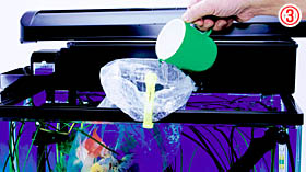 - 次に、袋を開けて、クリップなどで水槽のふちに袋を留めるなどしてから、水質を合わせるため、水槽の中の水を袋の中に少しずつ入れていきます。このとき金魚の飛び出しに注意します。